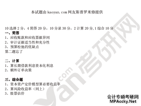 百余所会计专硕高校MPAcc复试真题汇总(含