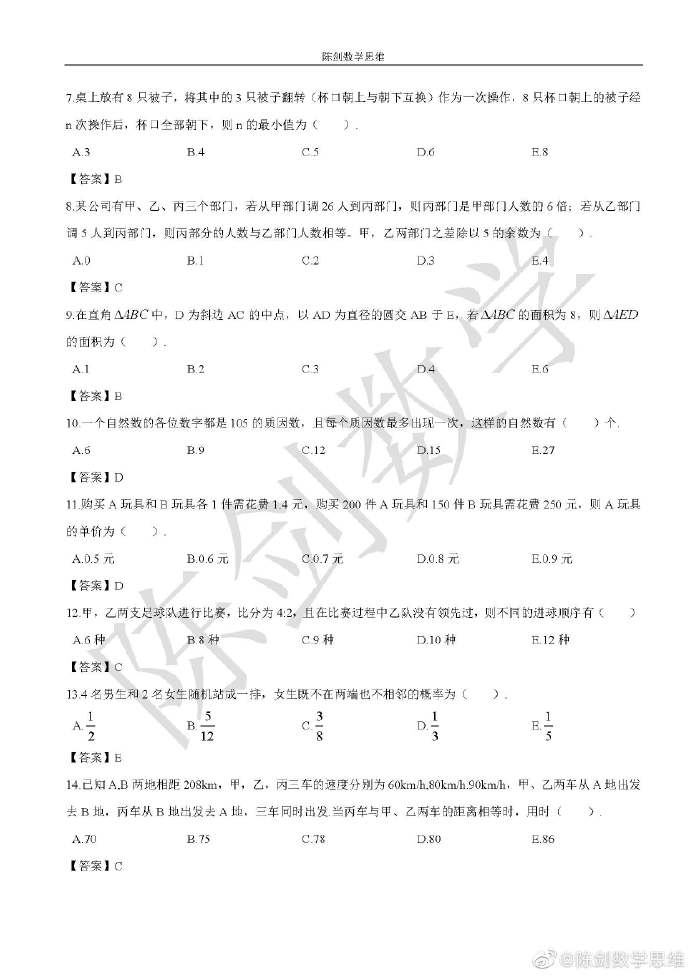 2022年MPAcc管理类联考真题数学答案解析(幂学版)