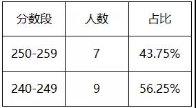 各分数段录取情况如下: